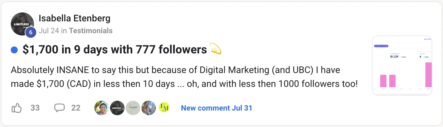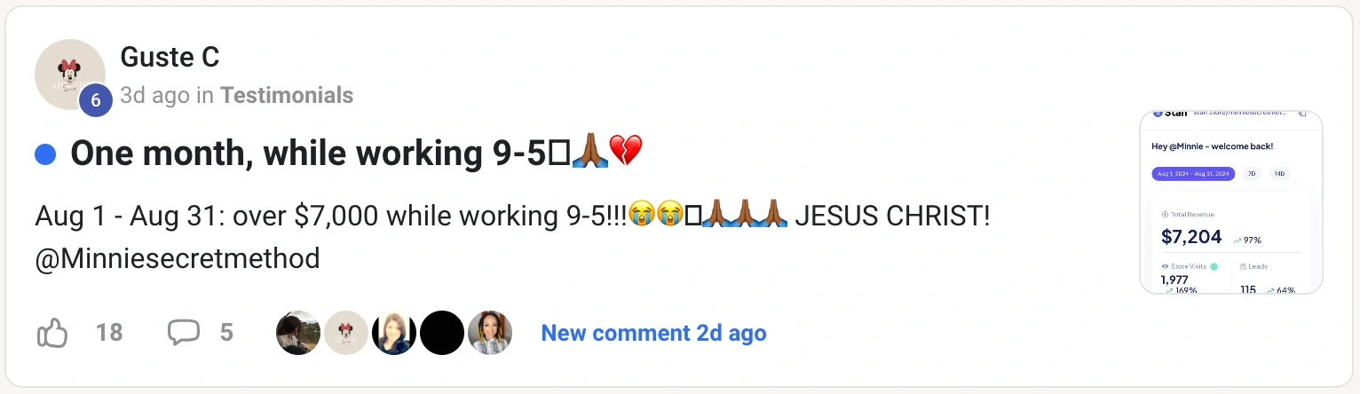 "I've learned more than I expected from this program. Now, I'm consistently making $3,500 a month in 2 hrs a day!"